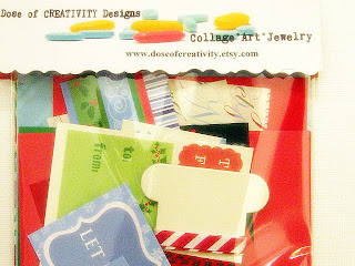 In the spirit of holiday giving, I have created a collage scrap pack for one lucky winner. The scrap pack has over 30 pieces of paper, ribbon and stickers: everything you need to get your creative holiday groove on during this enchanting season.